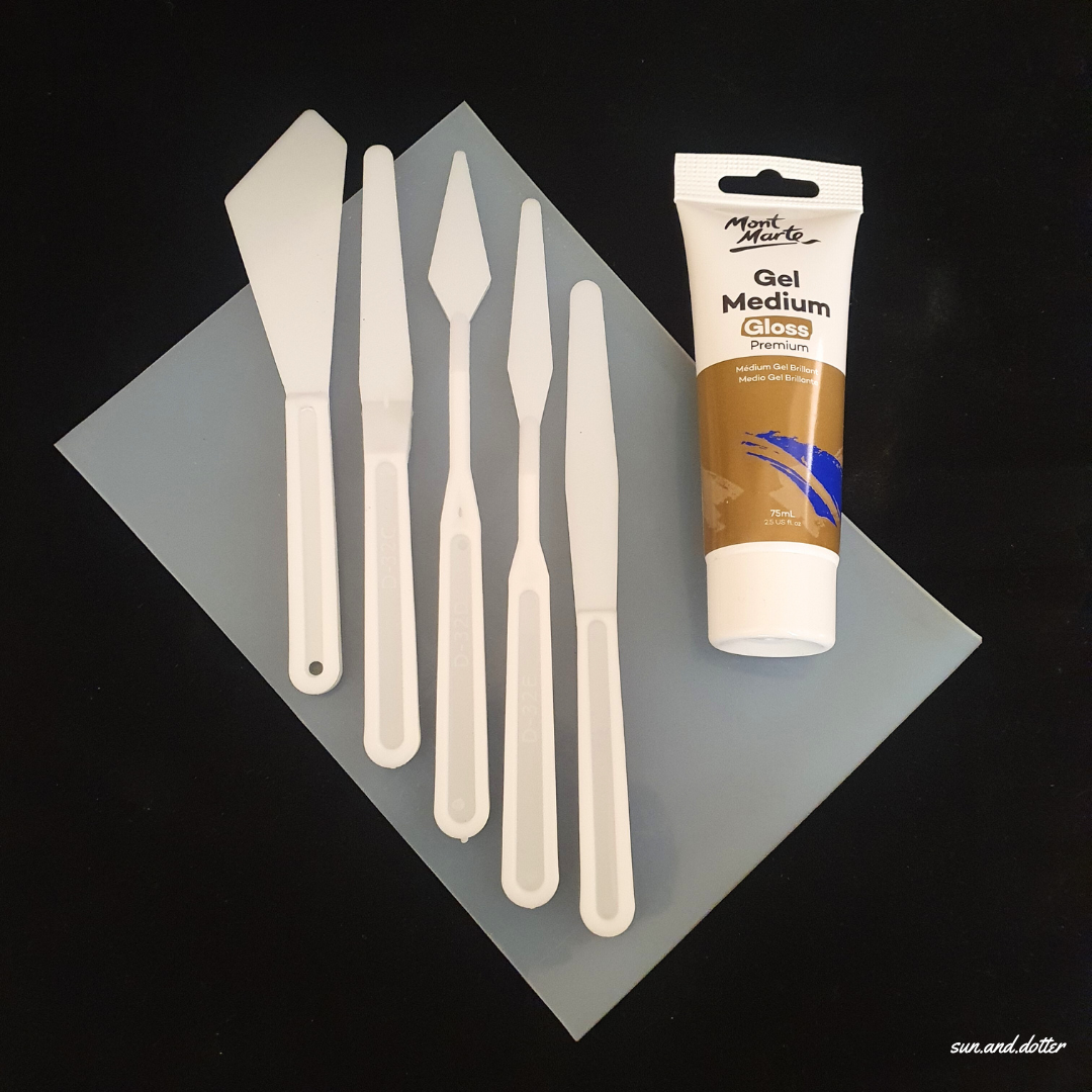 - Plastic Palette Knife Set: This versatile set of 5 palette knives is perfect for mixing your paint. Each knife offers different shapes and sizes depending on your mixing preferences. Easy to clean and use.