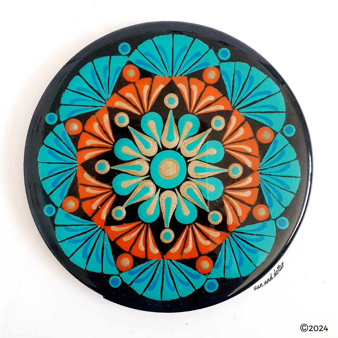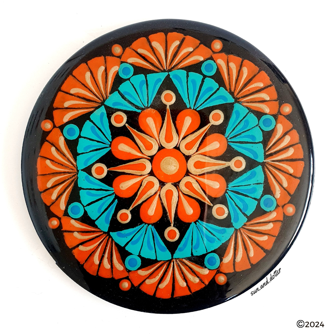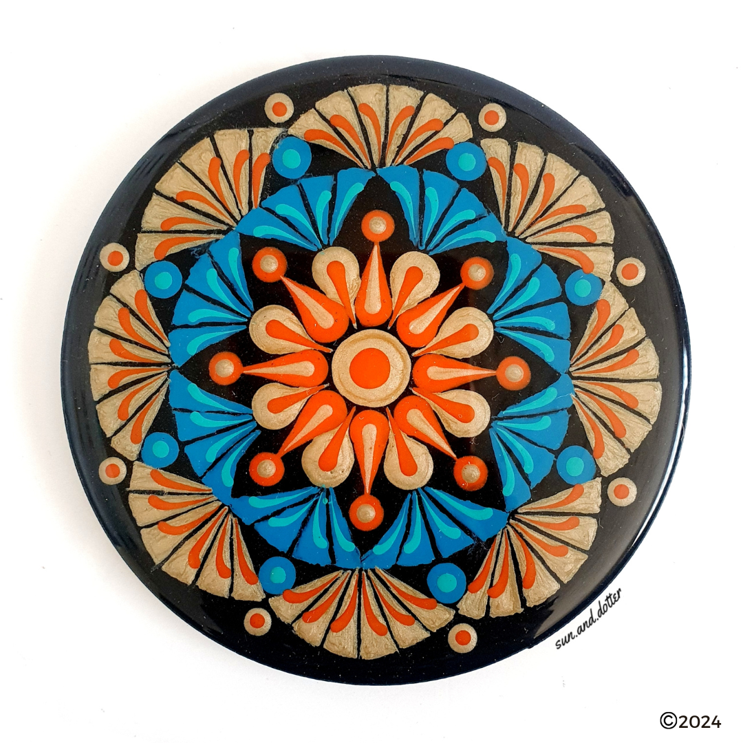 Intermediate level of dotting skills required to follow the pattern and create this 8 point pattern with different elements like spears, swooshes and dots