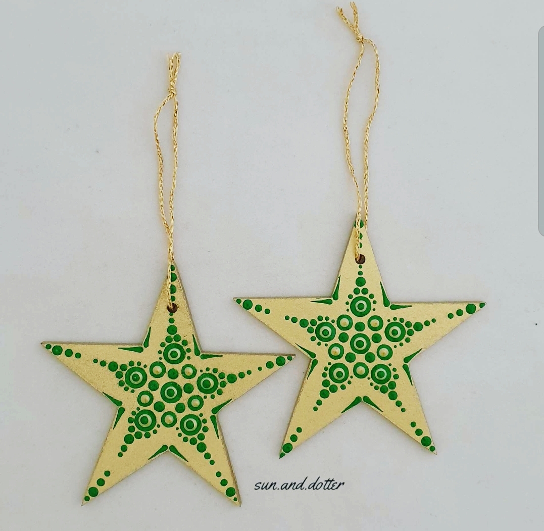 Set of 2 Dot Art Christmas Ornaments which will bring a creative touch to your Christmas Tree, home and gifts