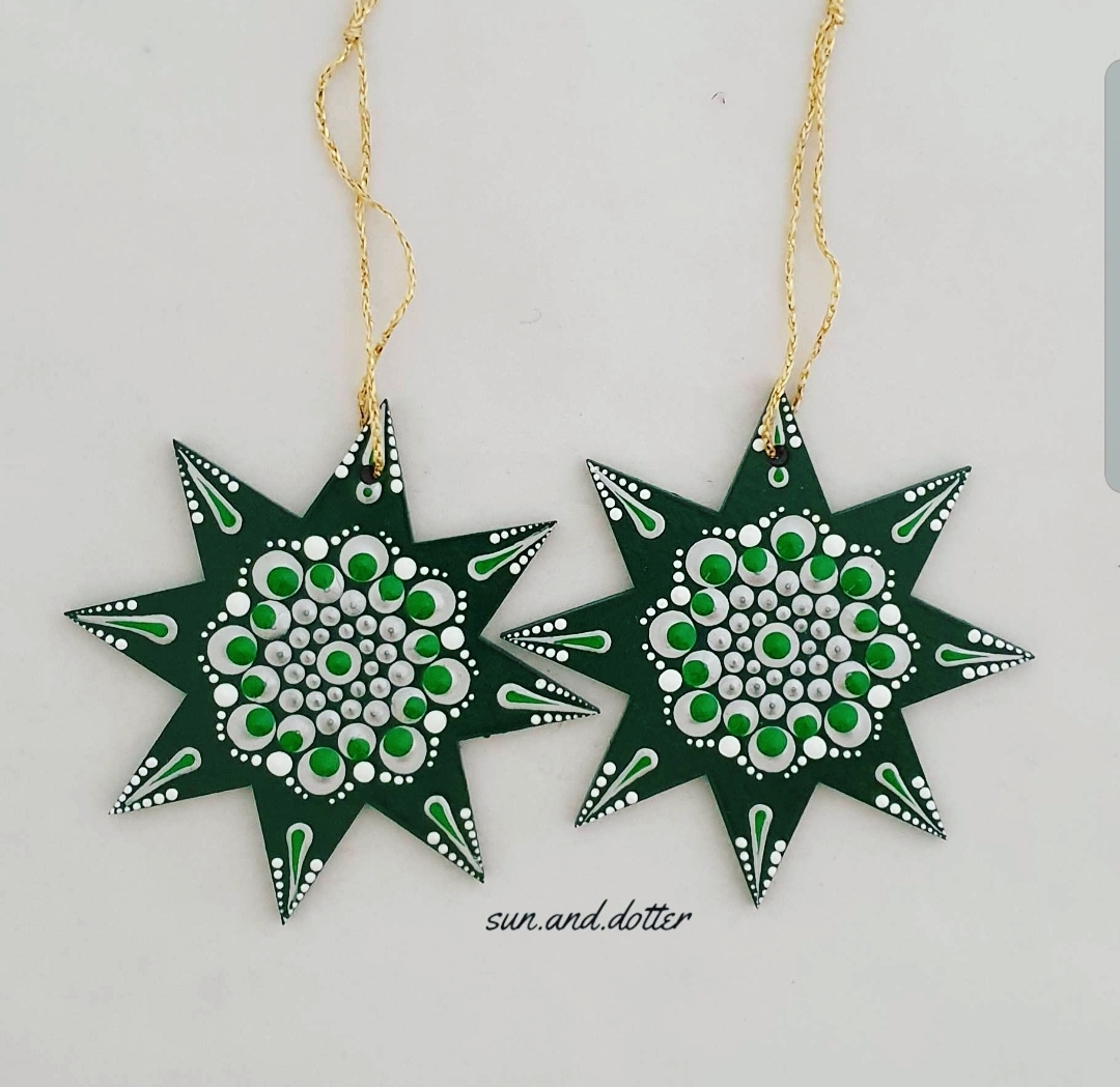 Set of 2 Dot Art Christmas Ornaments which will bring a creative touch to your Christmas Tree, home and gifts