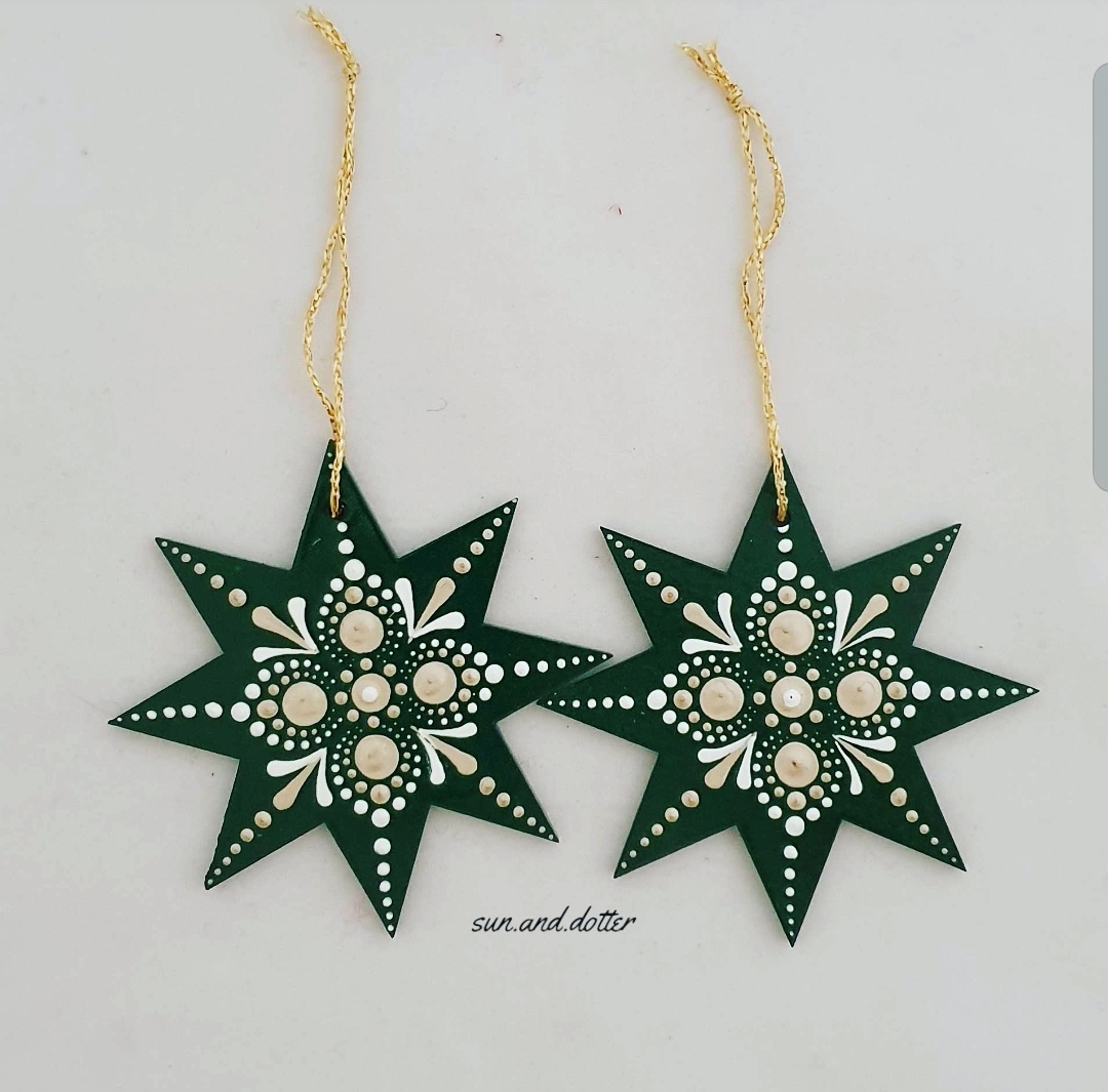 Set of 2 Dot Art Christmas Ornaments which will bring a creative touch to your Christmas Tree, home and gifts