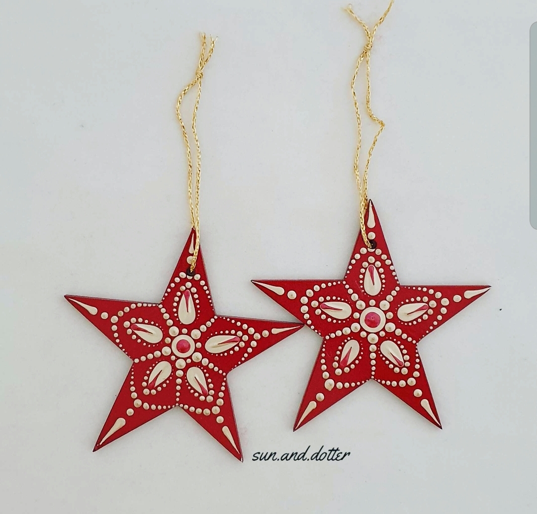 Set of 2 Dot Art Christmas Ornaments which will bring a creative touch to your Christmas Tree, home and gifts
