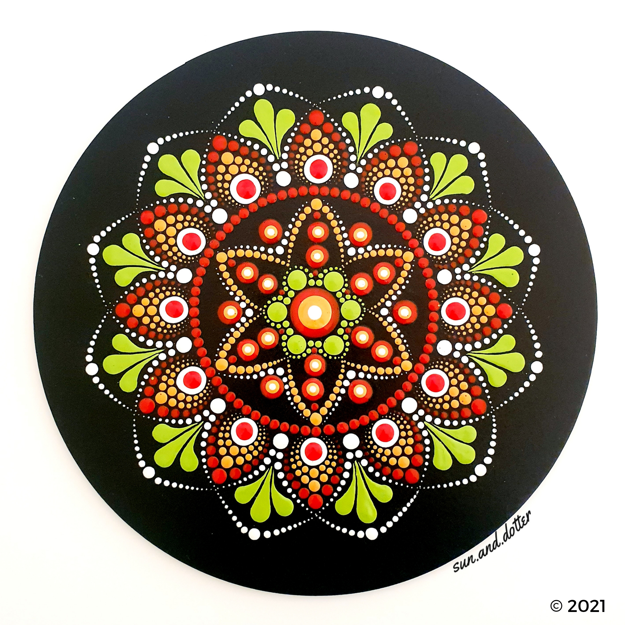 Discover the beauty of meticulously hand-painted mandala designs, crafted with care and creativity over the years by Sun and Dotter. Each piece is a unique representation of dot art mastery, inspired by intricate patterns that have captured the hearts of our loyal followers—many of whom have lovingly named these designs.
