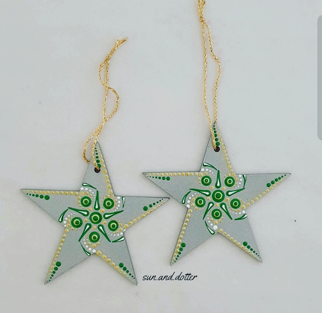 Set of 2 Dot Art Christmas Ornaments which will bring a creative touch to your Christmas Tree, home and gifts
