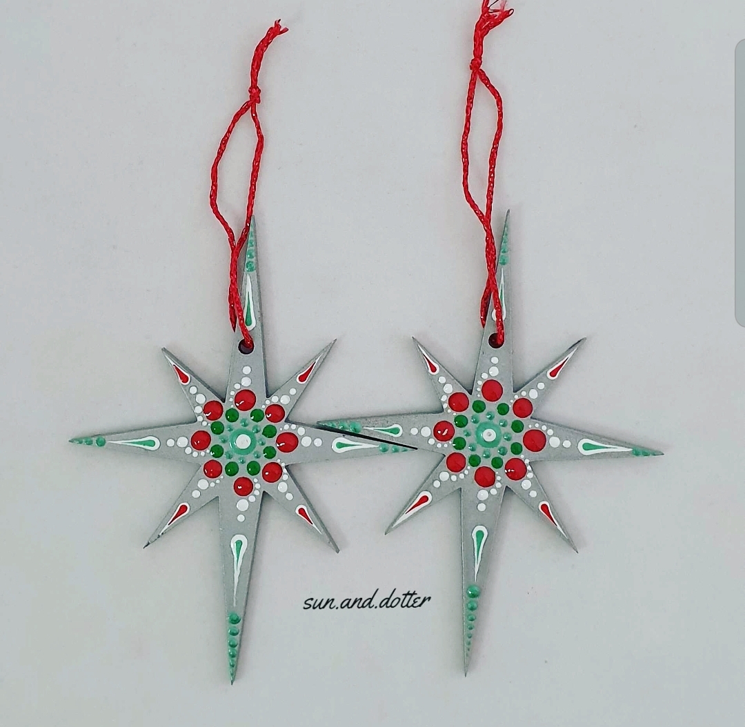 Set of 2 Dot Art Christmas Ornaments which will bring a creative touch to your Christmas Tree, home and gifts