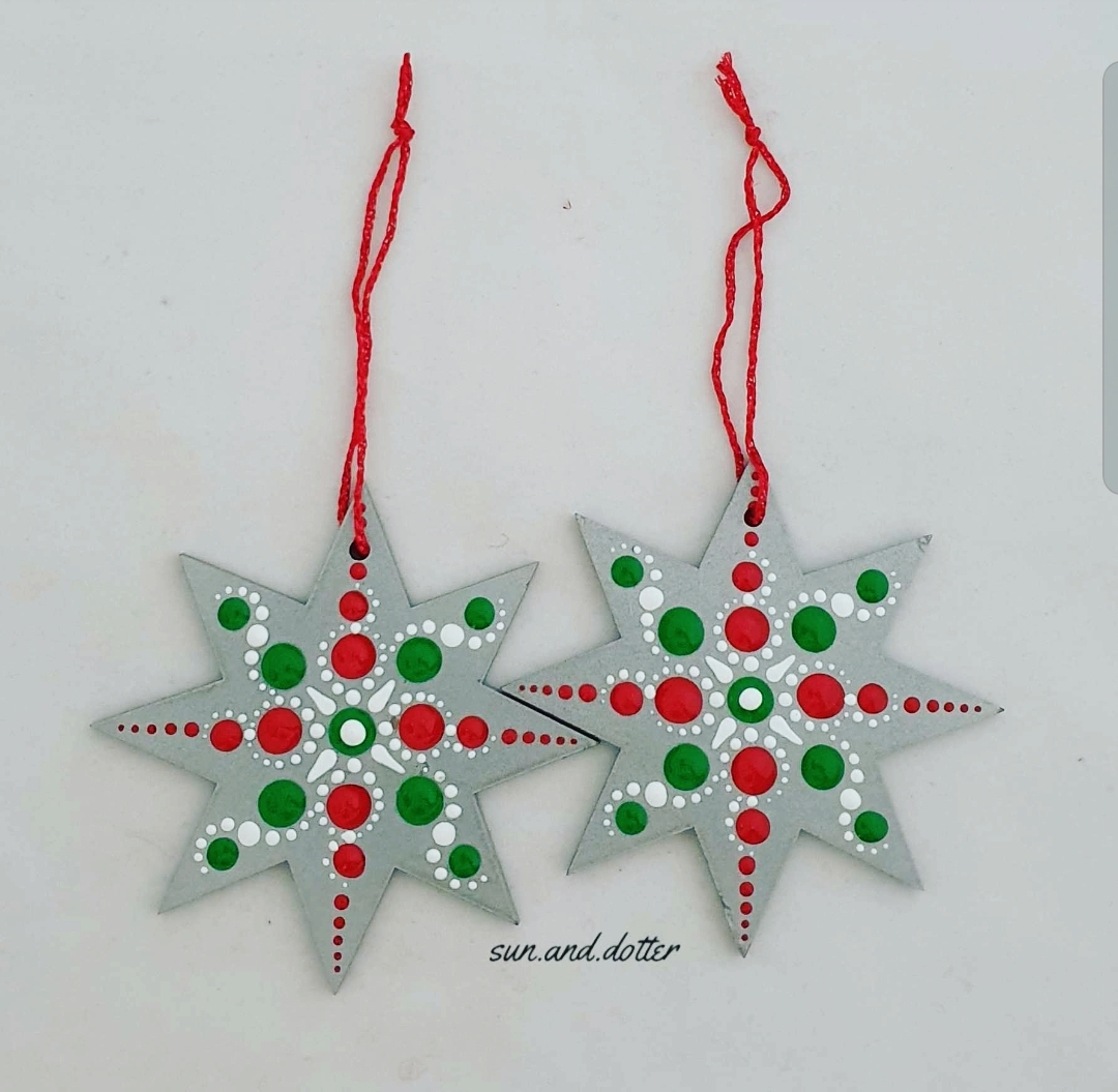 Set of 2 Dot Art Christmas Ornaments which will bring a creative touch to your Christmas Tree, home and gifts