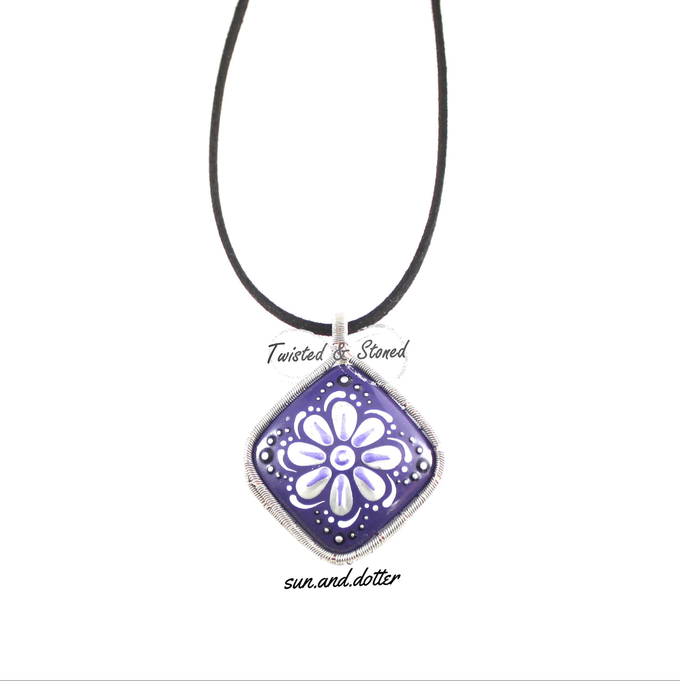 Wired Dot Art Pendant – Purple Square Stone