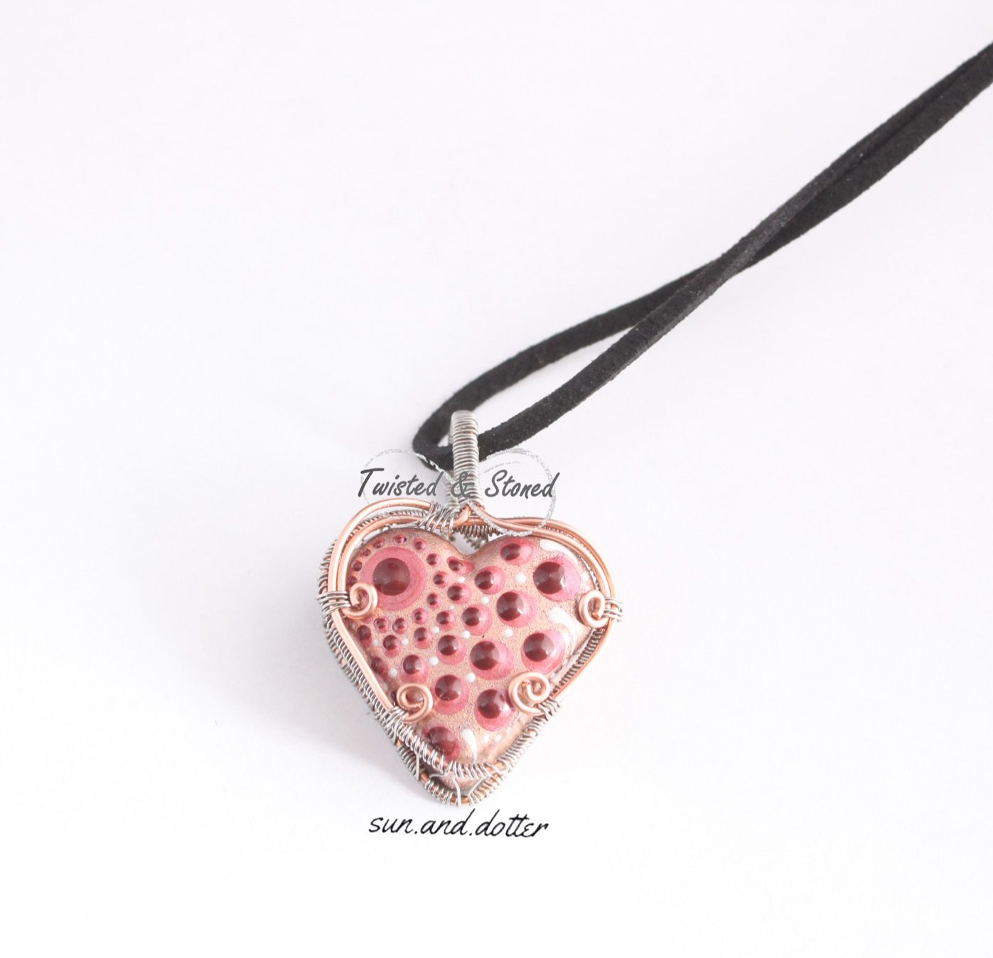 Rose Gold Heart Stone Wired Pendant with Dot Art